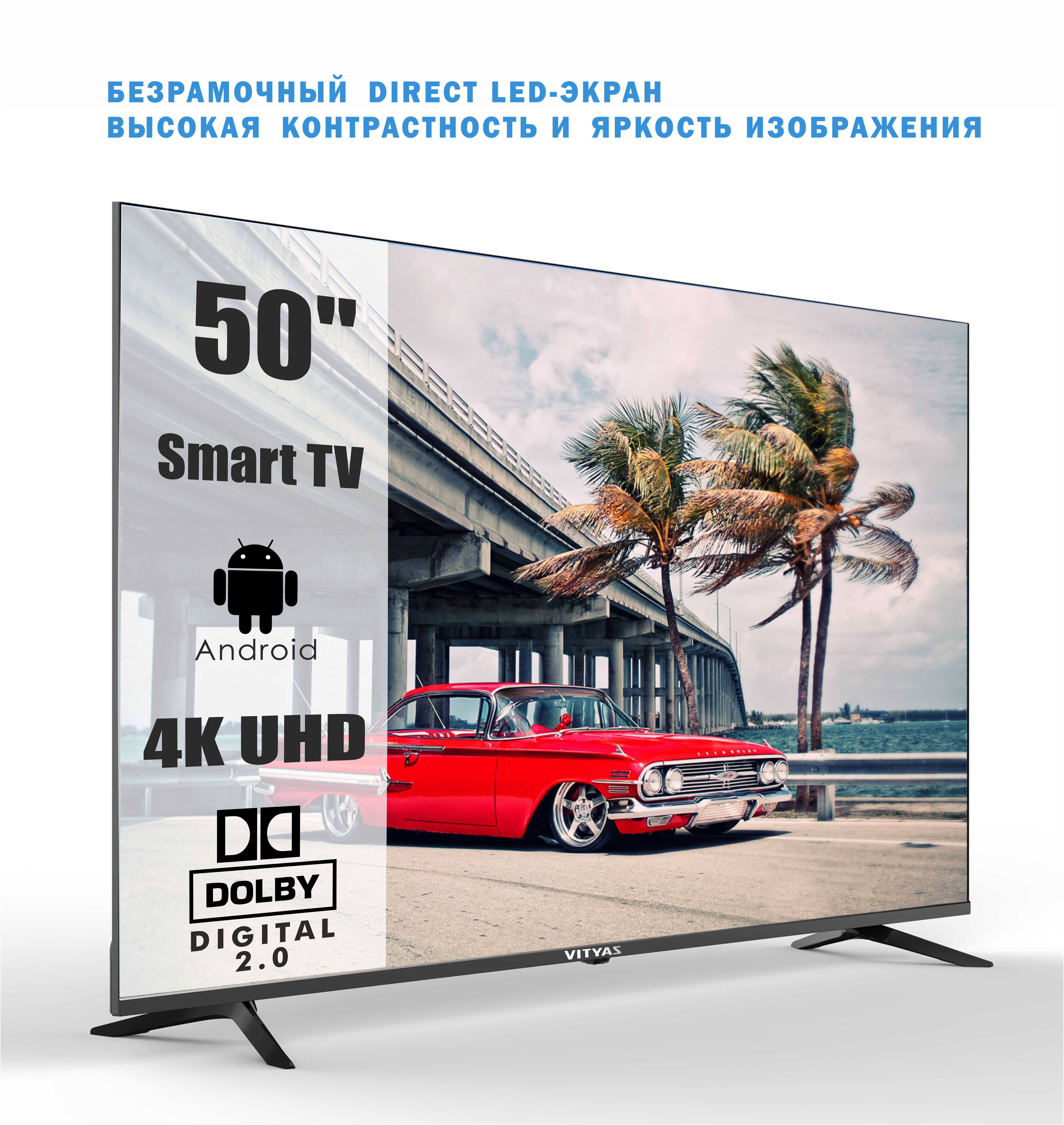 Телевизор «Витязь» 50LU1218 с тюнером DVB T/T2/C/S/S2 поддерживает Smart TV, воспроизведение контента с USB и запись с ТВ на сторонний носитель. Модель с операционной системой Android отличается наличием TimeShift, Sleep-таймера, технологии HDMI ARC и защиты от детей, что упрощает эксплуатацию. Для управления задействуется пульт ДУ, питающийся от двух батареек ААА.
